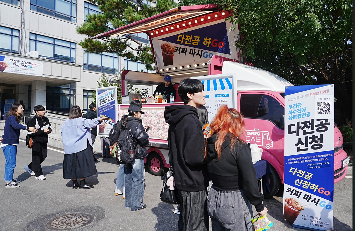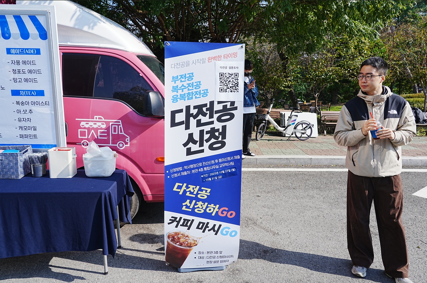 이번 캠페인은 다전공 관련 학생들의 다양한 질문에 대해서 교무학사팀 관계자가 현장에서 직접 답변을 제공하고 ‘다전공 신청하Go 커피 마시Go’와 ‘다전공 설문조사’ 등의 이벤트를 진행하여 큰 호응을 얻었다.