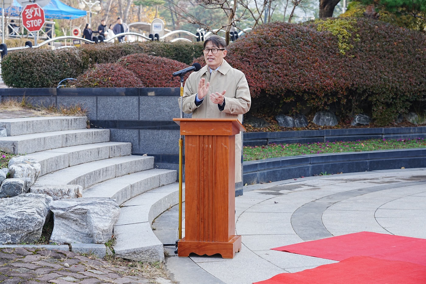 [사진 1. 2025년 크리스마스트리 점등식을 진행하는 조지훈 교목실장]