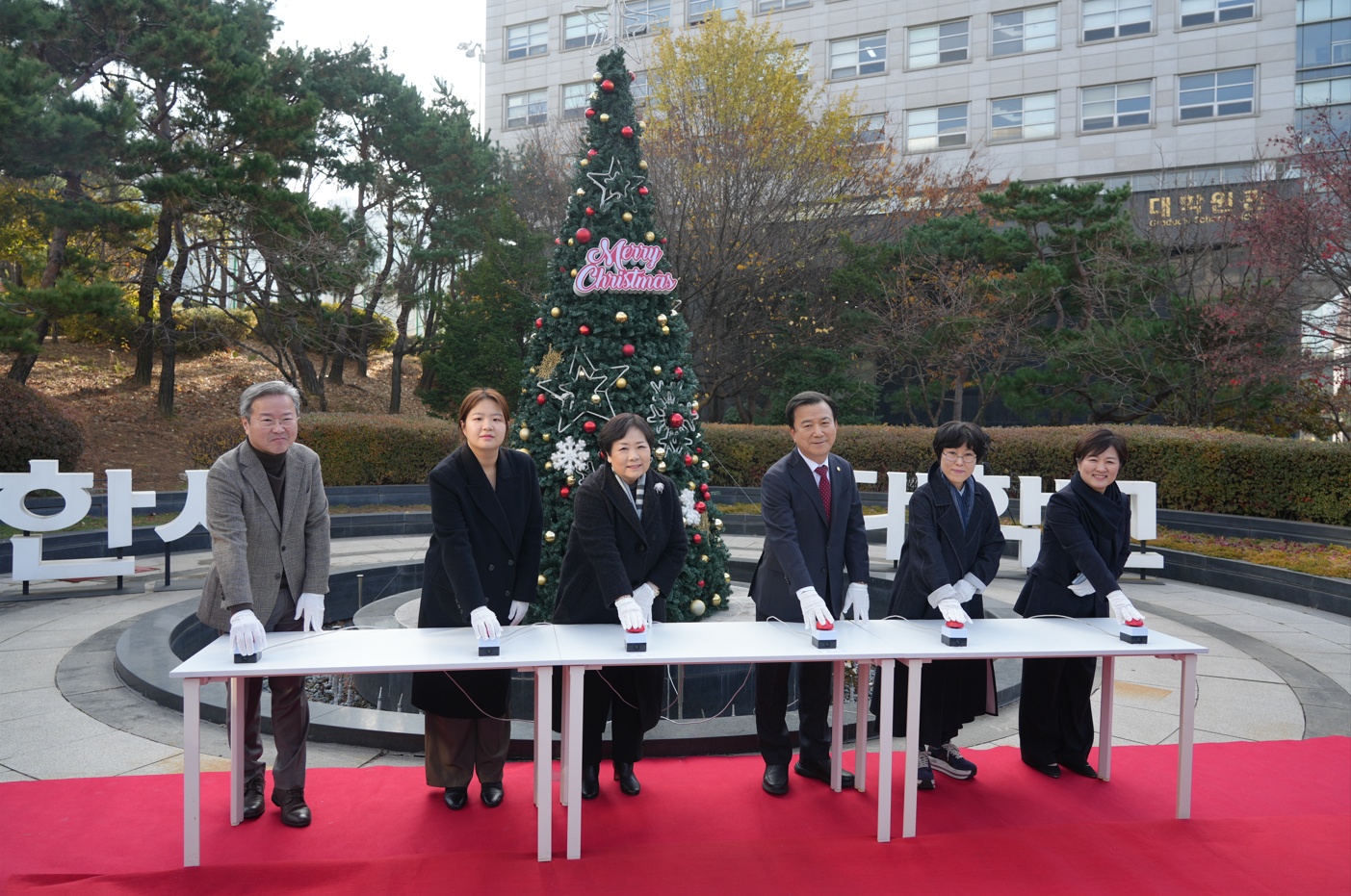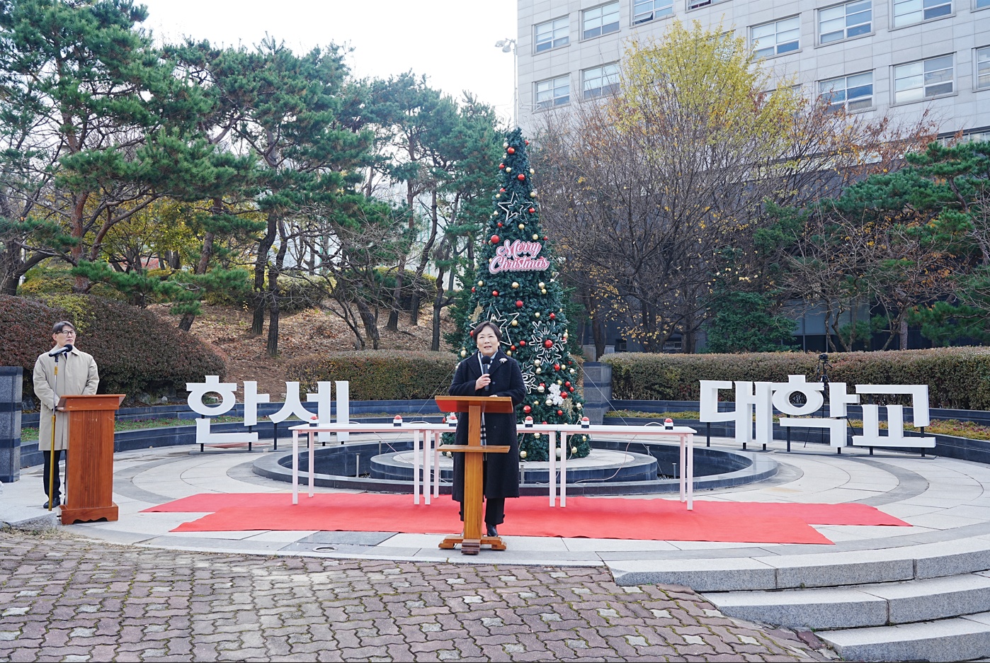 한세대학교(총장 백인자)는 ‘혁신과 도전으로 지역성장을 견인하는 영성중심 대학’으로 인류 구원을 위해 이 땅에 오신 예수 탄생의 의미를 지역사회와 나누기 위하여 대학원관 앞 분수대에 크리스마스트리를 설치하고 점등식을 26일 진행했다.