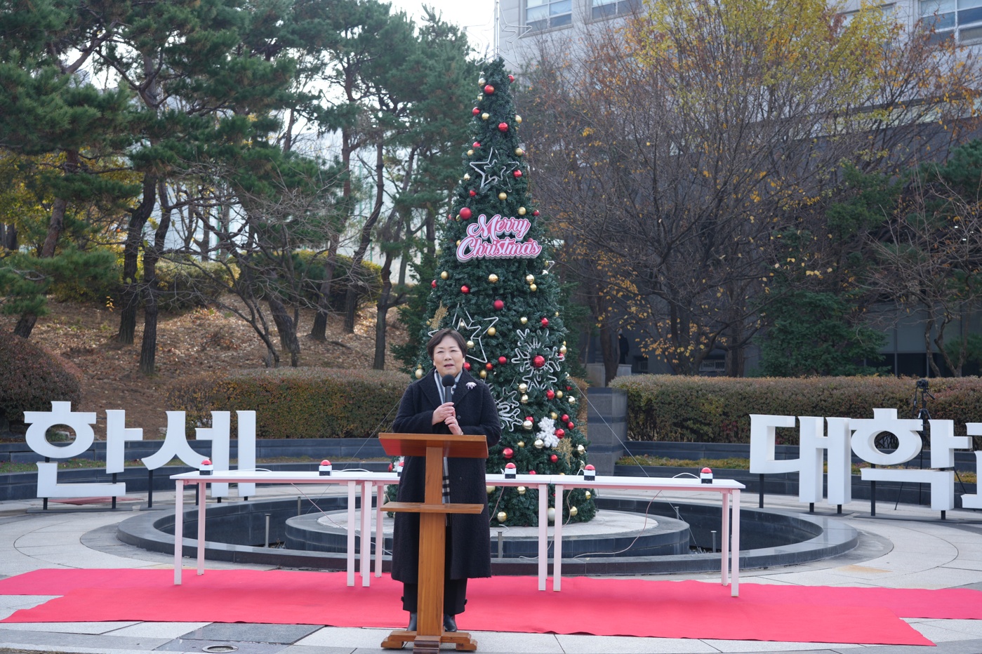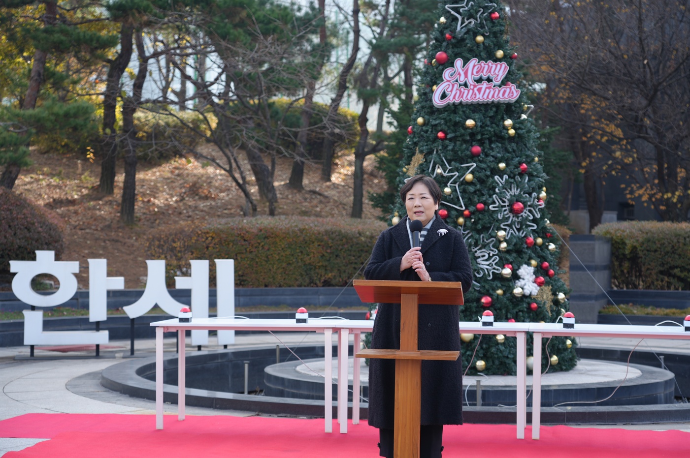[사진 5. 크리스마스트리 점등식에서 성탄 축하 메시지를 전하는 백인자 총장 3]
