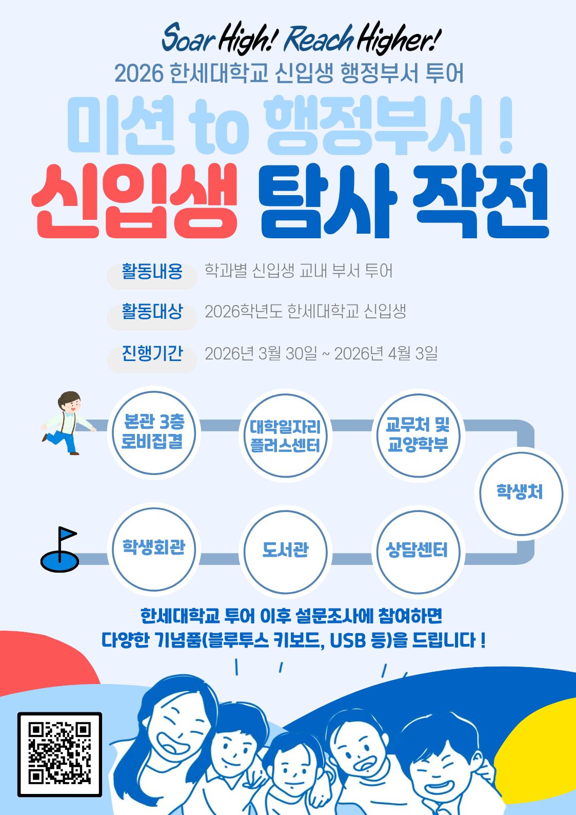 한세대학교(총장 백인자)는 입학관리본부 주관으로 2026년 캠퍼스 투어 미션 to 행정부서! 신입생 탐사 작전행사를 330()부터 3()까지 5일간 실시했다.